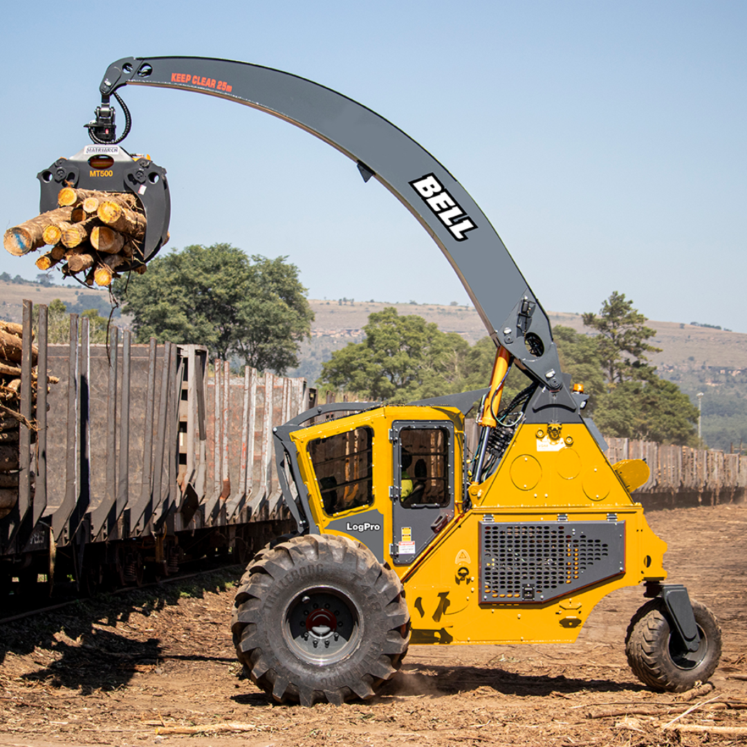The Bell LogPro is a robust and efficient timber handling solution, engineered for optimal performance in challenging environments. Powered by a 4.4-liter JCB Diesel Max 444 T2 engine with 84 hp and 320 Nm of torque, this machine ensures powerful handling with fuel efficiency. The LogPro features a load-sensing hydraulic system, a free-hanging Matriarch MT500LB grapple, and a heavy-duty rotator for precision timber lifting and placement. Designed for operator comfort and safety, it includes a spacious, ROPS/FOPS/OPS-compliant cab with HVAC, ergonomic controls, and excellent all-around visibility. With a maximum lift height of 4,577 mm and a safe lifting load of 1,750 kg, the Bell LogPro 1831 is a versatile and durable addition to any forestry operation.