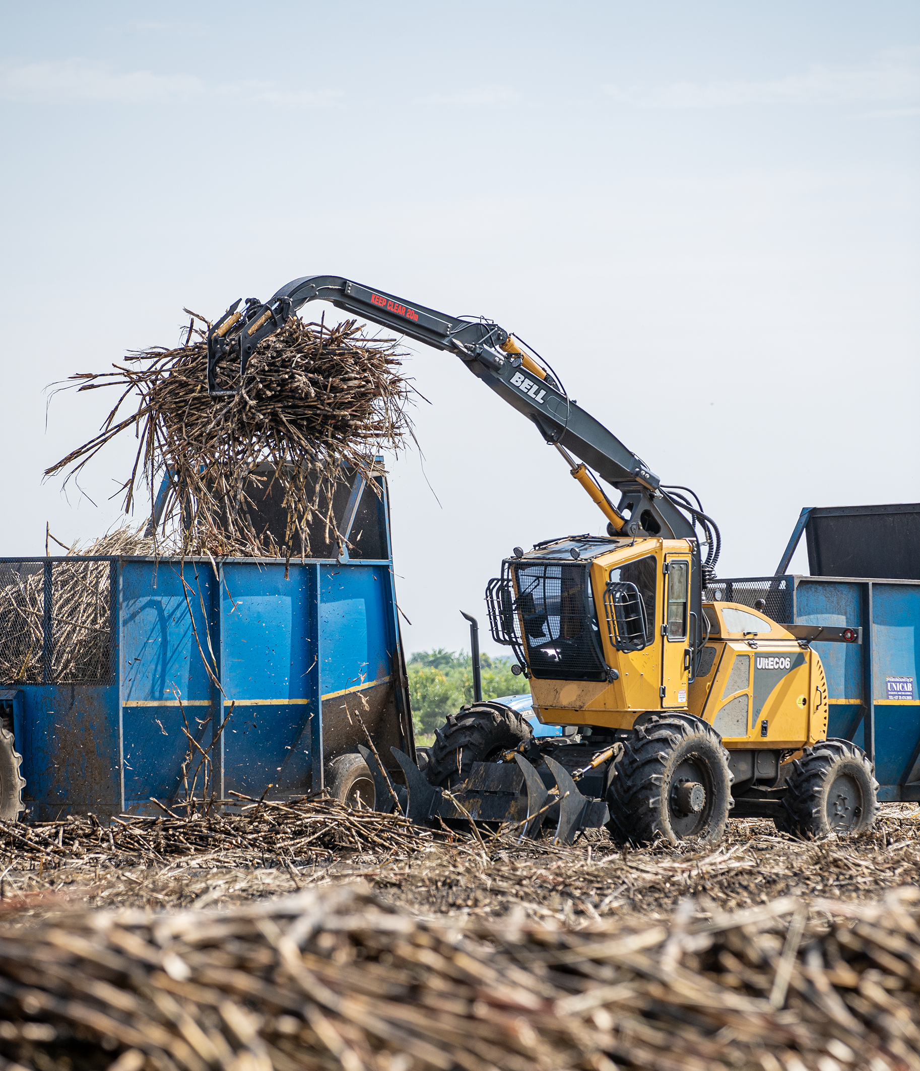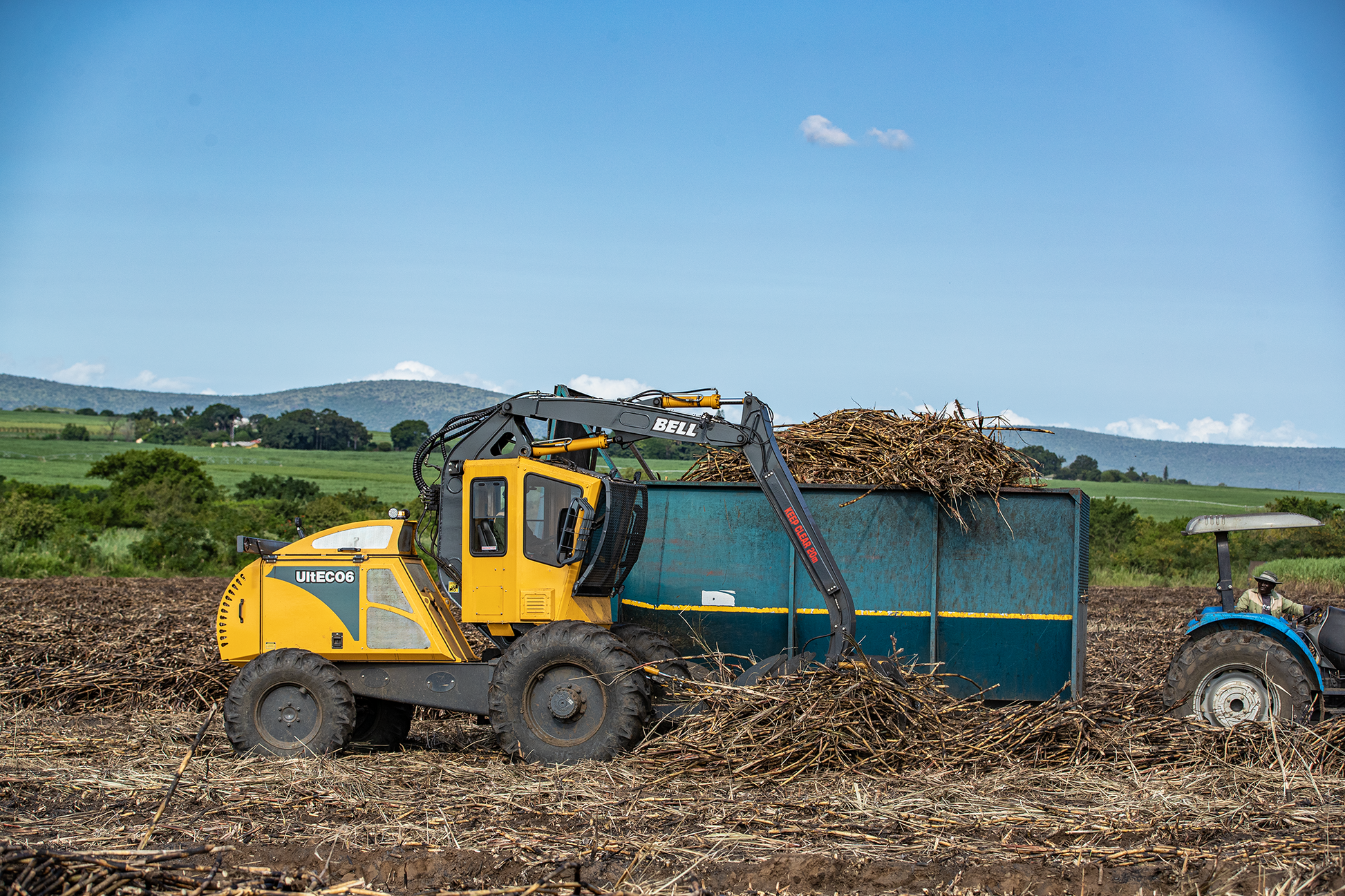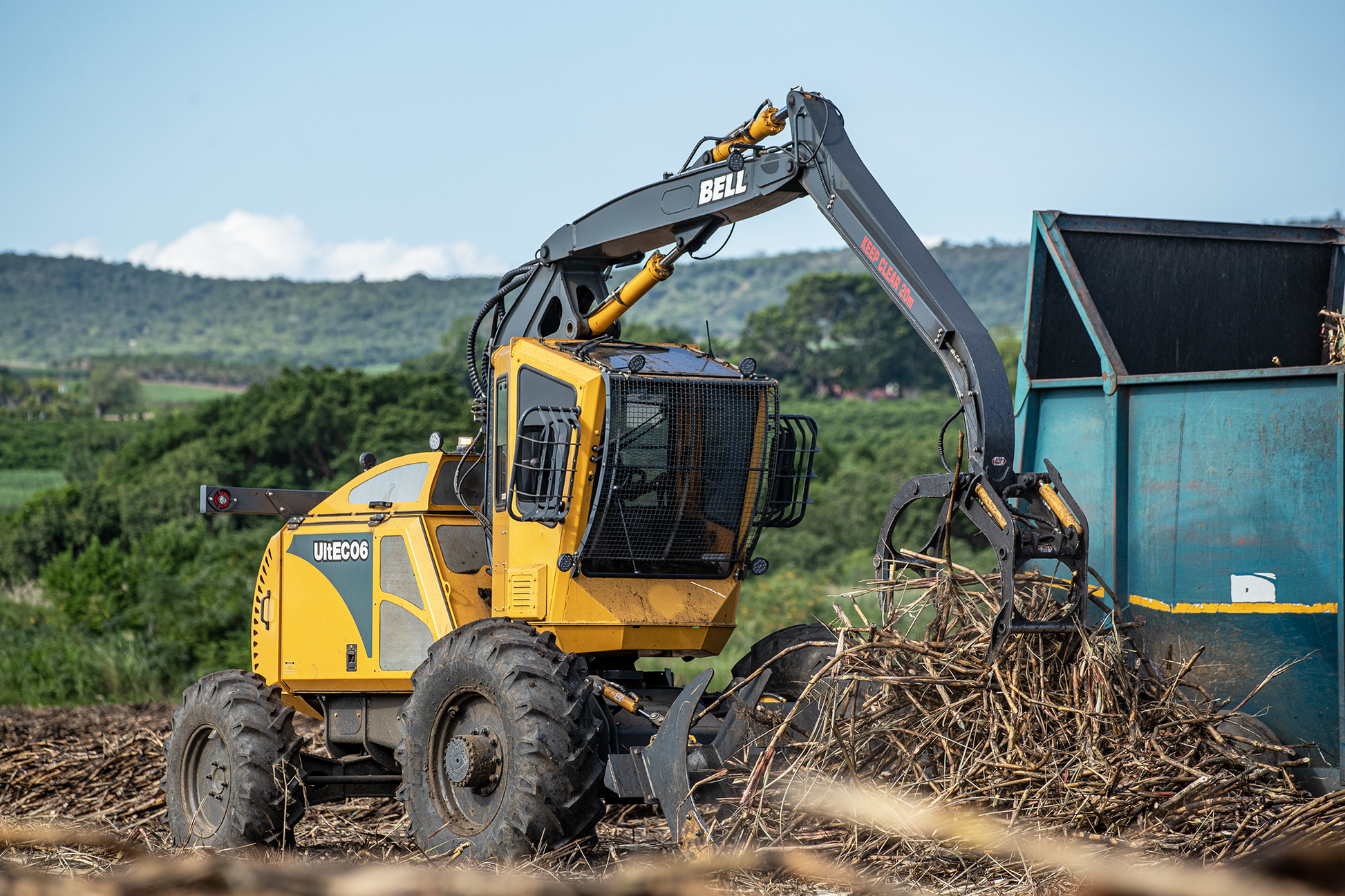 The Bell 6 Ton Cane Slew Loader is a powerful and efficient sugarcane loader, engineered for high productivity in challenging agricultural conditions. Equipped with a robust JCB Diesel Max engine and an all-wheel drive hydrostatic system, it offers superior traction and speeds of up to 26 km/h. The 185° slewing boom and ergonomic cab design reduce operator fatigue, while LED lighting, dynamic braking, and safety features ensure reliable performance for 24-hour operations. This machine also simplifies maintenance with ground-level access to essential service points. The Slew Loader promises low cost per tonne and is optimized for soft ground stability, making it a trusted choice for demanding sugarcane harvesting tasks.