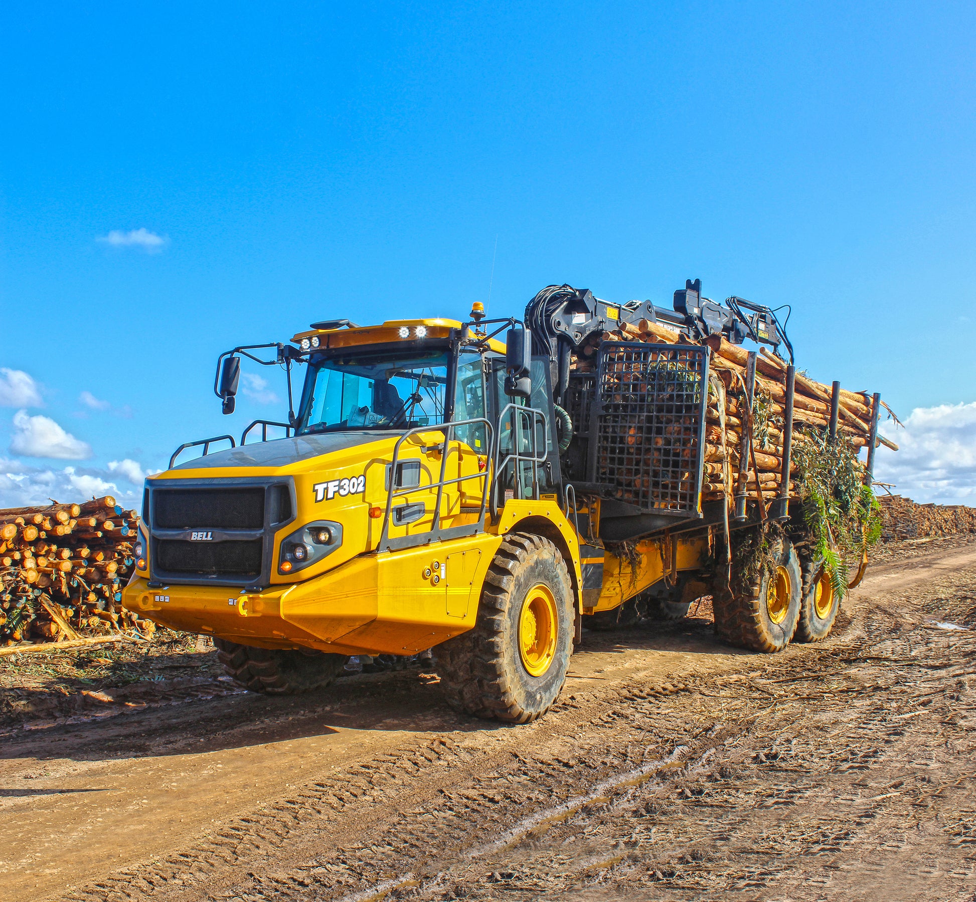 The Bell TF302E is a high-performance 6x6 timber crane equipped with a powerful 205 kW Mercedes-Benz engine and designed for rugged forestry applications. With its all-wheel-drive configuration and robust Allison automatic transmission, it offers reliable traction and a maximum speed of 50 km/h, making it highly maneuverable across tough terrain. The TF302E features an ergonomically designed cab with advanced visibility, air-suspension seating, and noise reduction technology for operator comfort. Equipped with a load-sensing hydraulic system and a heavy-duty braking system, this timber crane ensures safe, efficient, and productive operations in challenging forestry environments.