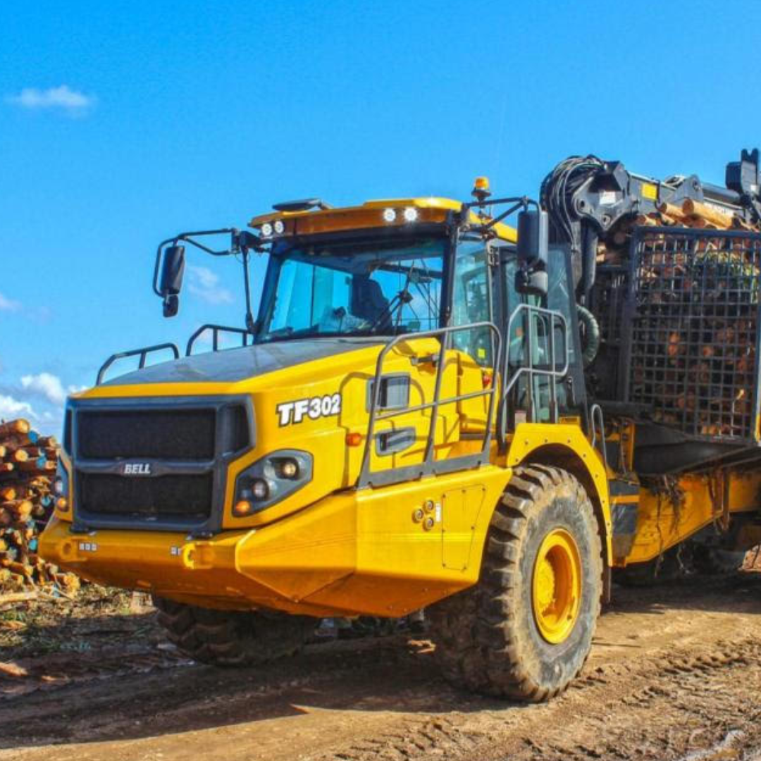 The Bell TH302E 6x6 WDB is a powerful and reliable timber hauler, ideal for demanding forestry applications. Equipped with a 240 kW Mercedes-Benz engine and a 6x6 drive configuration, this machine delivers impressive power and stability on rugged terrain. The TH302E features wet disc brakes (WDB) for enhanced braking performance, even under heavy loads. Its ergonomic cab is designed with noise reduction, an air-suspension seat, and excellent visibility to ensure operator comfort. With a heavy-duty hydraulic system and robust suspension, the TH302E is engineered for efficient, high-capacity timber hauling, making it an essential asset for forestry operations.