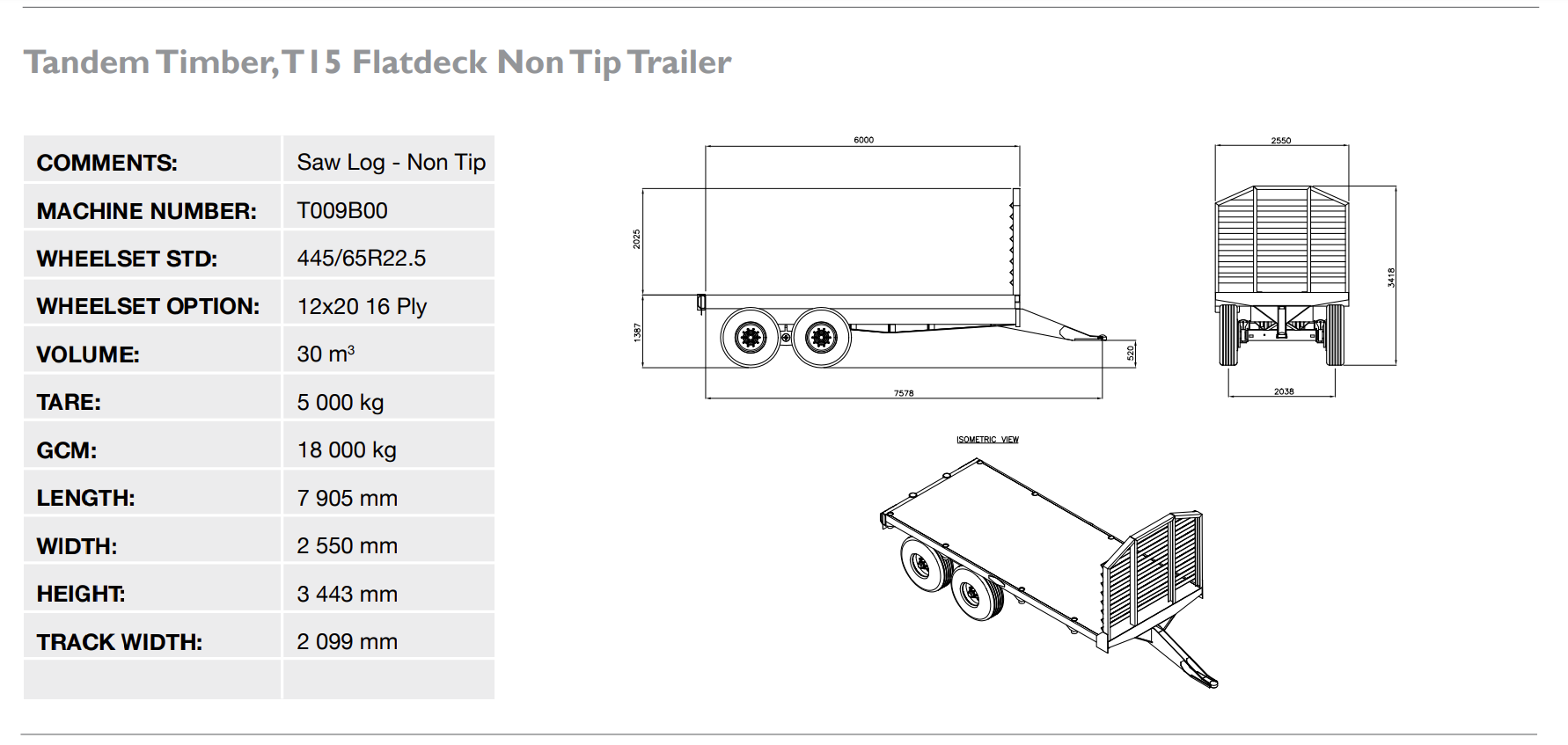 TRAILER,TIMBER (Flat Deck Non Tip)
